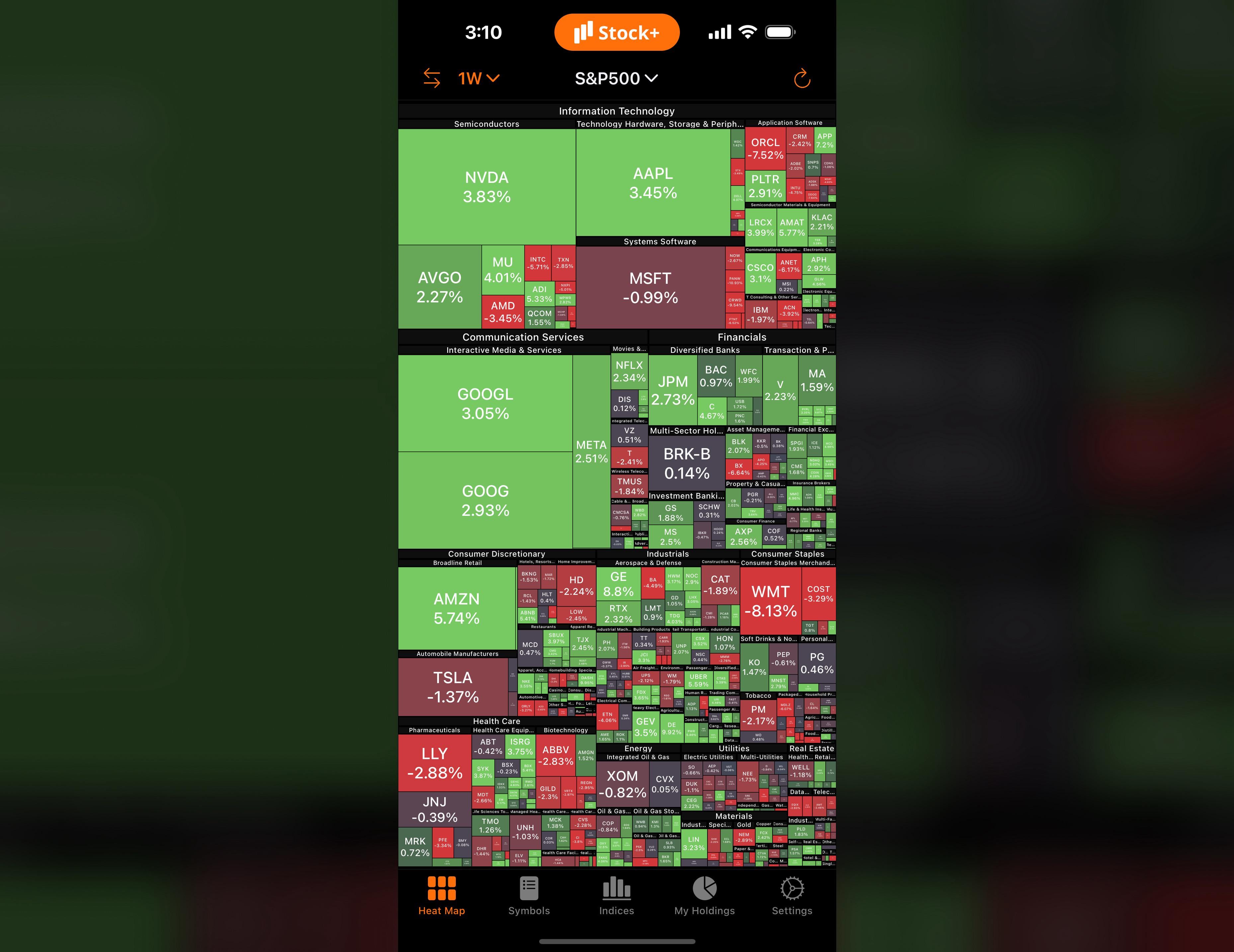❓ Note: Many people have asked where screenshots come from in my previous posts. I'm using Stock+ on iPhone and iPad. You can find it on the App Store. If you're using Android, I'm now sure if it's available, but you can try searching "Stock Map" or "Heat Map".