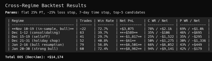 Mysterious_Sock_7085 on February 23, 2026 7:18 am You need to backtest it for more data regard, 5-6 years at least, plus don’t assume good fills, that’s the hardest part with options.