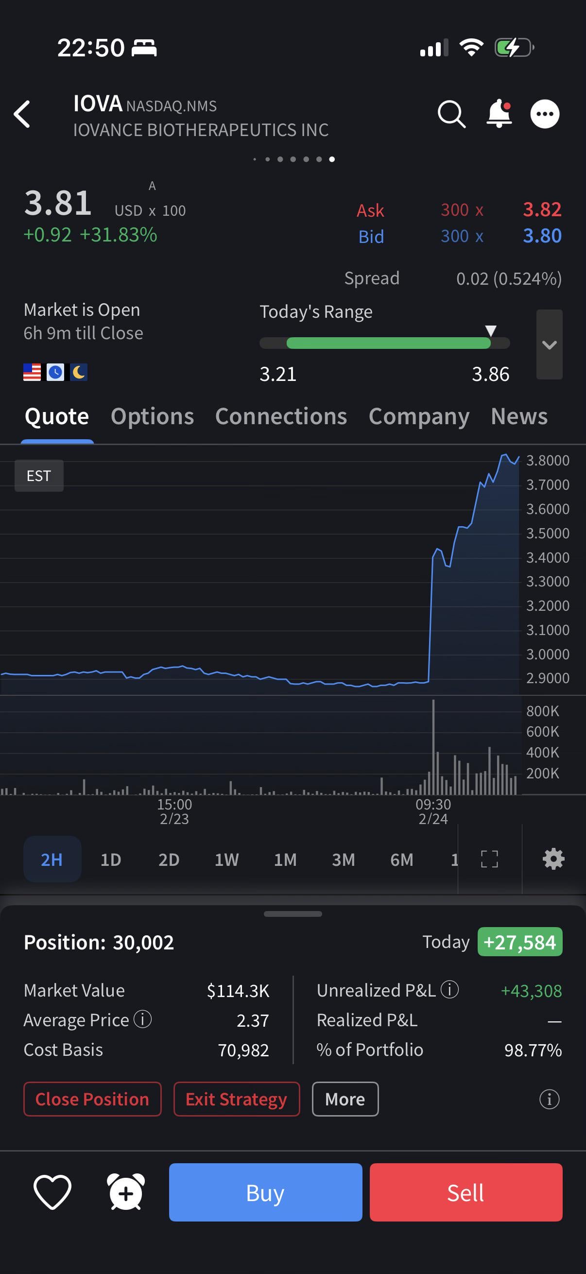 nice entry. the q4 numbers look legit and back to back improvement is what you want to see from a biotech that actually has an approved product. my only concern would be not having any exit plan, “not selling until $35” sounds great until it gaps down 30% on some random fda letter. i checked iova on [grid oasis](https://app.gridoasis.com/) and the ai analysts there were mixed which is usually what happens with small cap biotech, strong momentum but valuation gets weird at these market caps. maybe trim some at a double and let the rest ride?