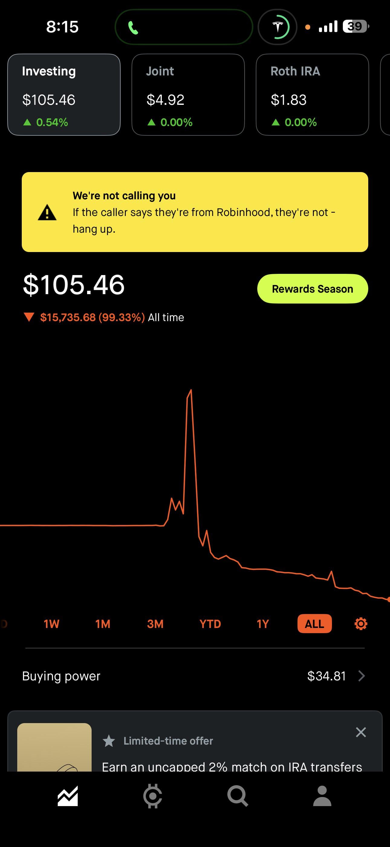 No it’s not Robinhood calling, it’s your loanshark calling pretending to be Robinhood. 😂