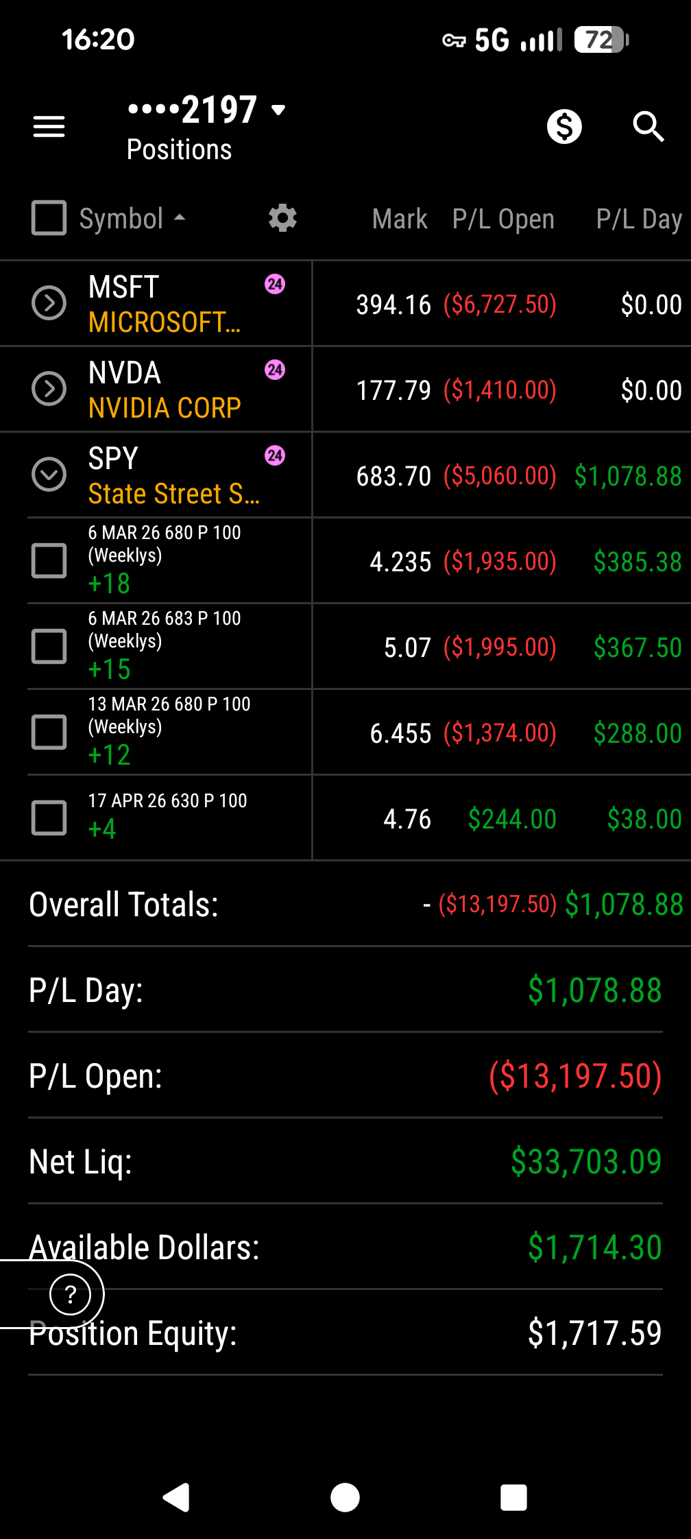 On Friday evening before market close, I bought about $30,000 in SPY puts expiring this week and the following week. Then the strikes in Iran took place Saturday morning. Anticipating a sharp drop-off/sell-off Monday morning at open with some panick-selling occuring. Entry when SPY was around 683