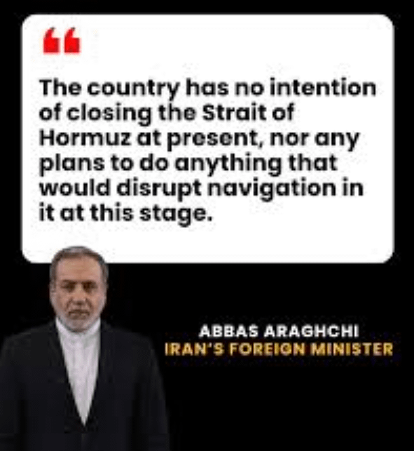 That’s cute OP thinks the FM has any say: as of this moment there are multiple ships on fire and sinking in the strait. The Iranian revolutionary guard is in control at the moment not Araghchi