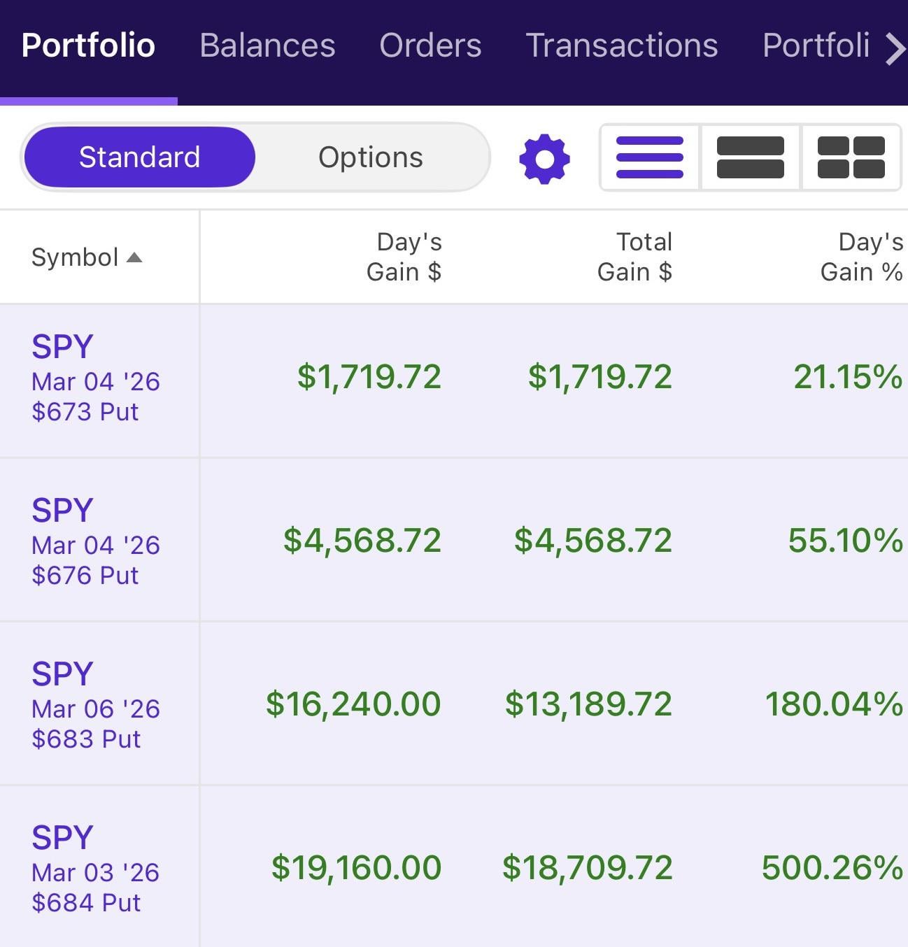 Rolled out of the 3/3s ($35k up) and then added more when we rallied. Sitting on 60 676p 3/4 and 20 contracts for the 5th and 6th. Playing with house money money now.