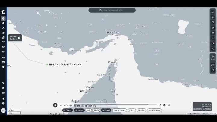 Chinese bulk carrier noping the fuck out after nearby ships were hit