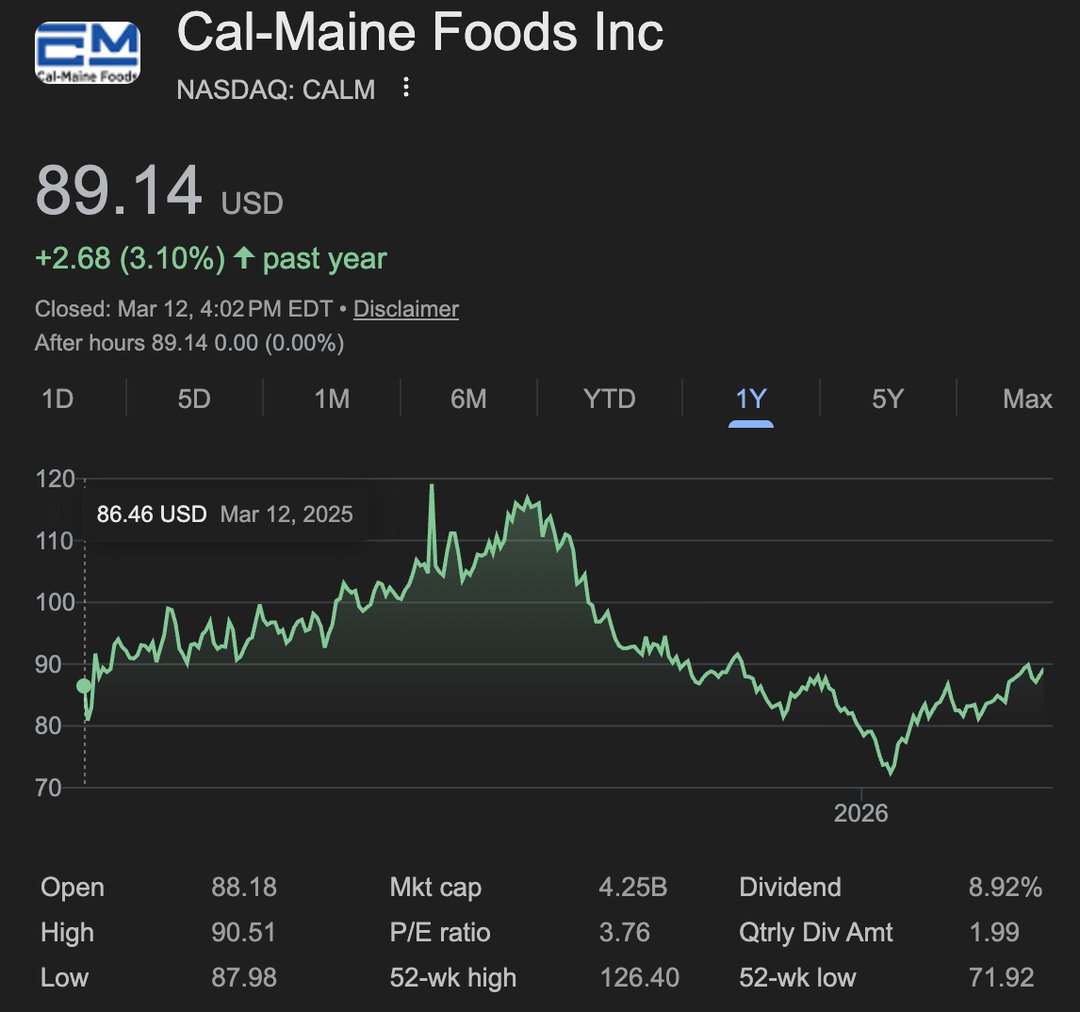 I think there will be a massive HPAI storm and I think $CALM will be perfectly positioned for that.