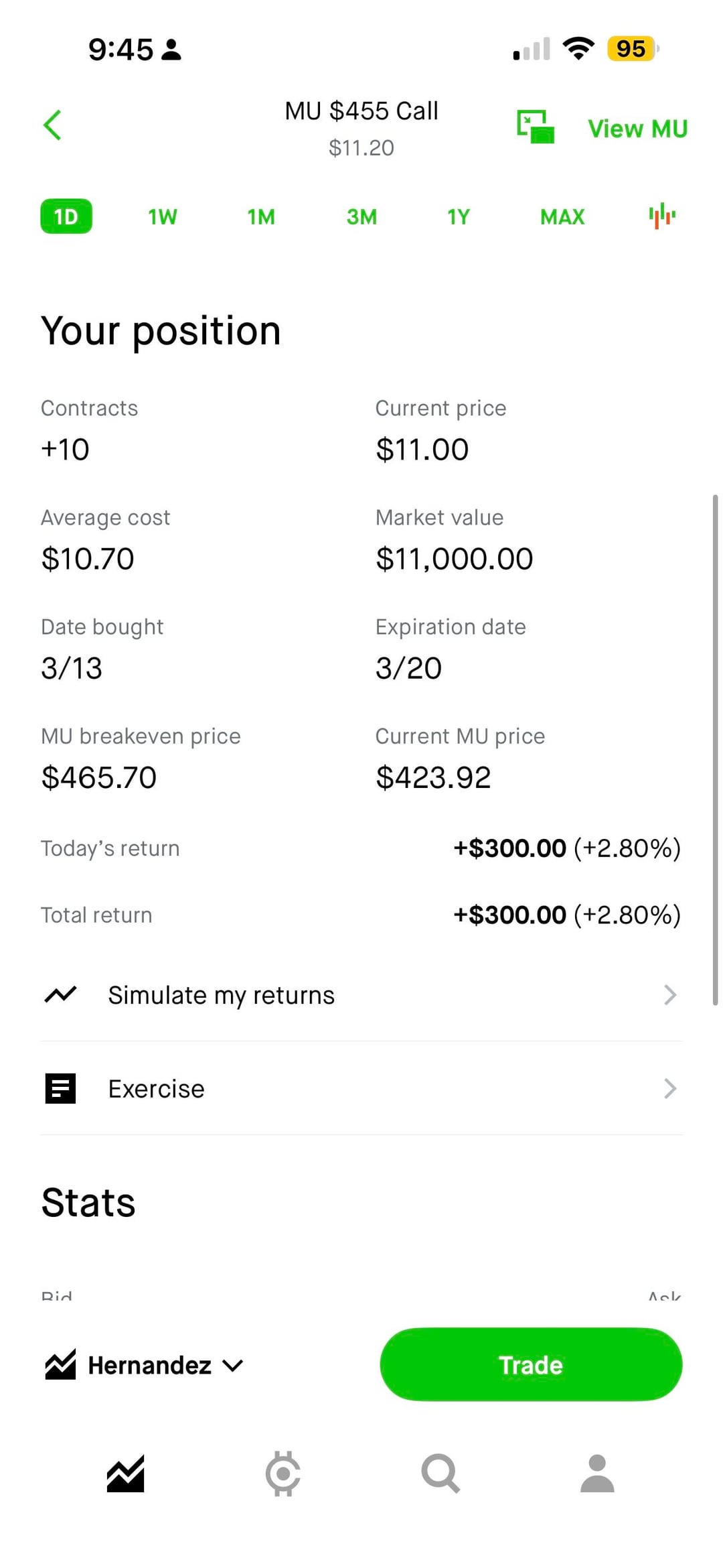 Better off buying shares and securing $1,100 if you get a 10% pump instead of losing all your money on options if it rugs or only goes up 5%.