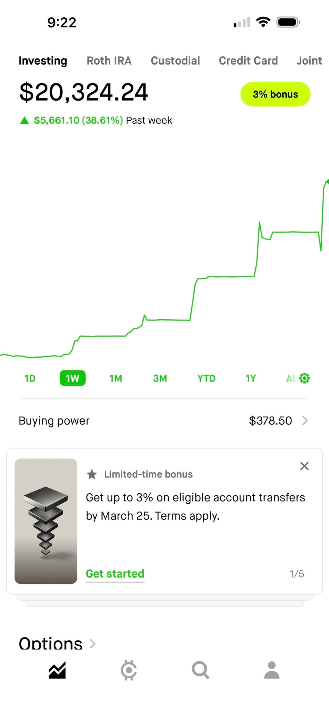 MarginCalledManager on March 13, 2026 4:36 pm $378.50 buying power; please post the blood bath after you hold for too long.