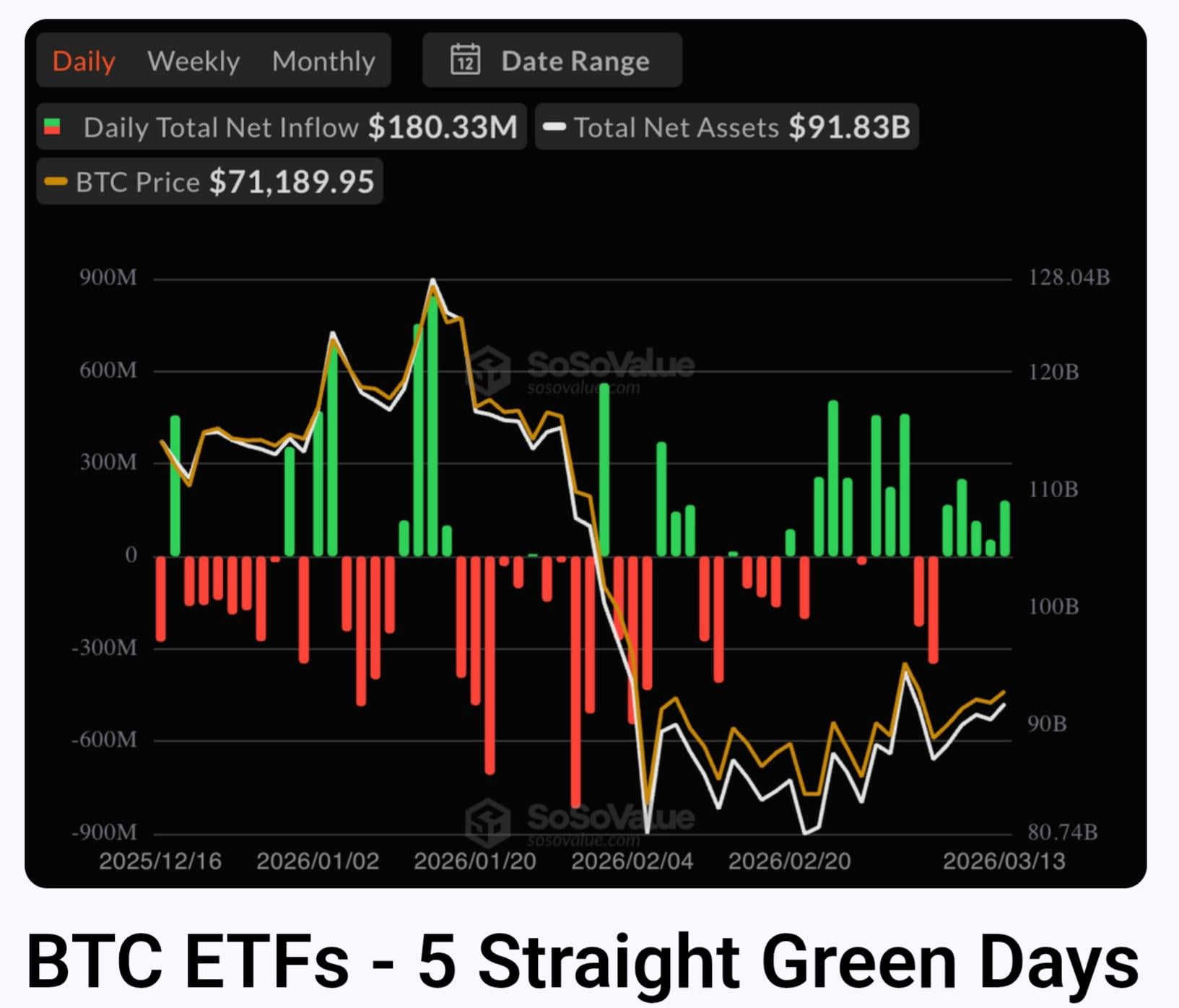 BTC ETFs had 5 straight green days! This is the first time since Sep 2025 l. MSTR also bought 20,000+ BTC this week. https://i.redd.it/dpjf9nptp1pg1.jpeg Posted by cryptonoobsnews
