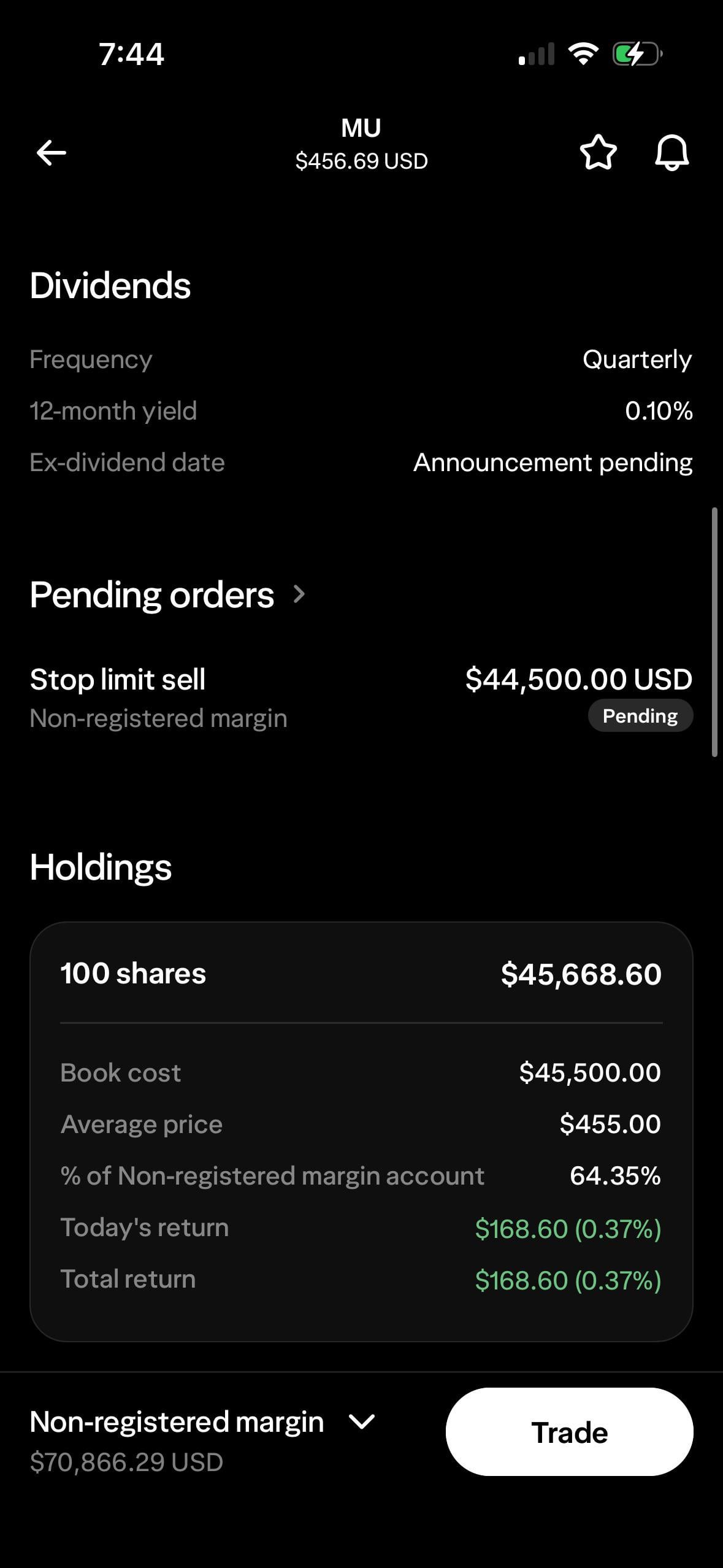 1. Good luck. WS doesn’t have stop losses, only stop limit sells, make sure you understand the difference.