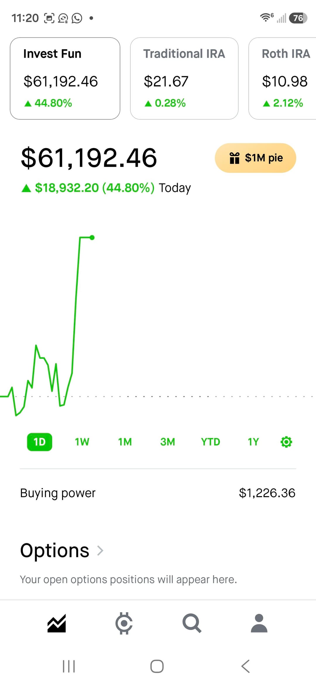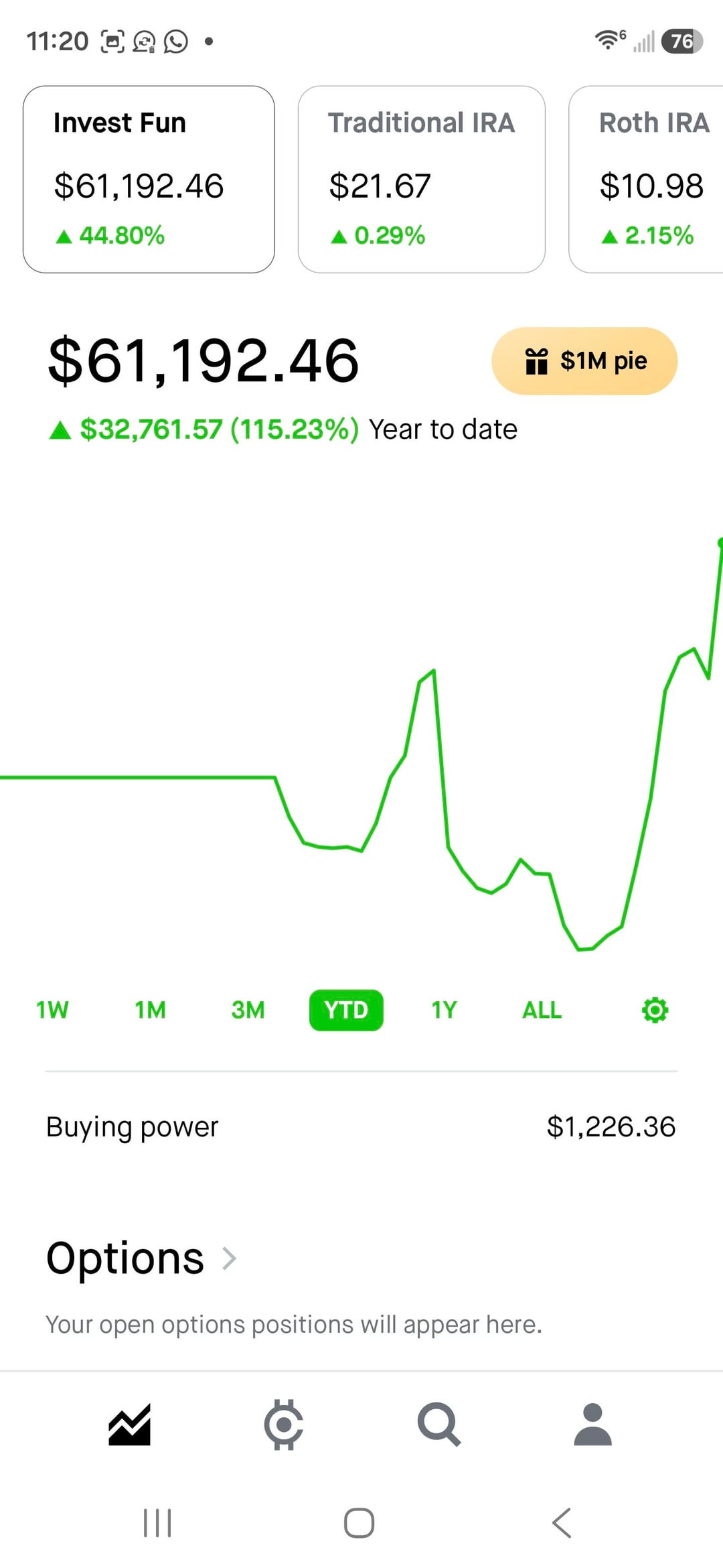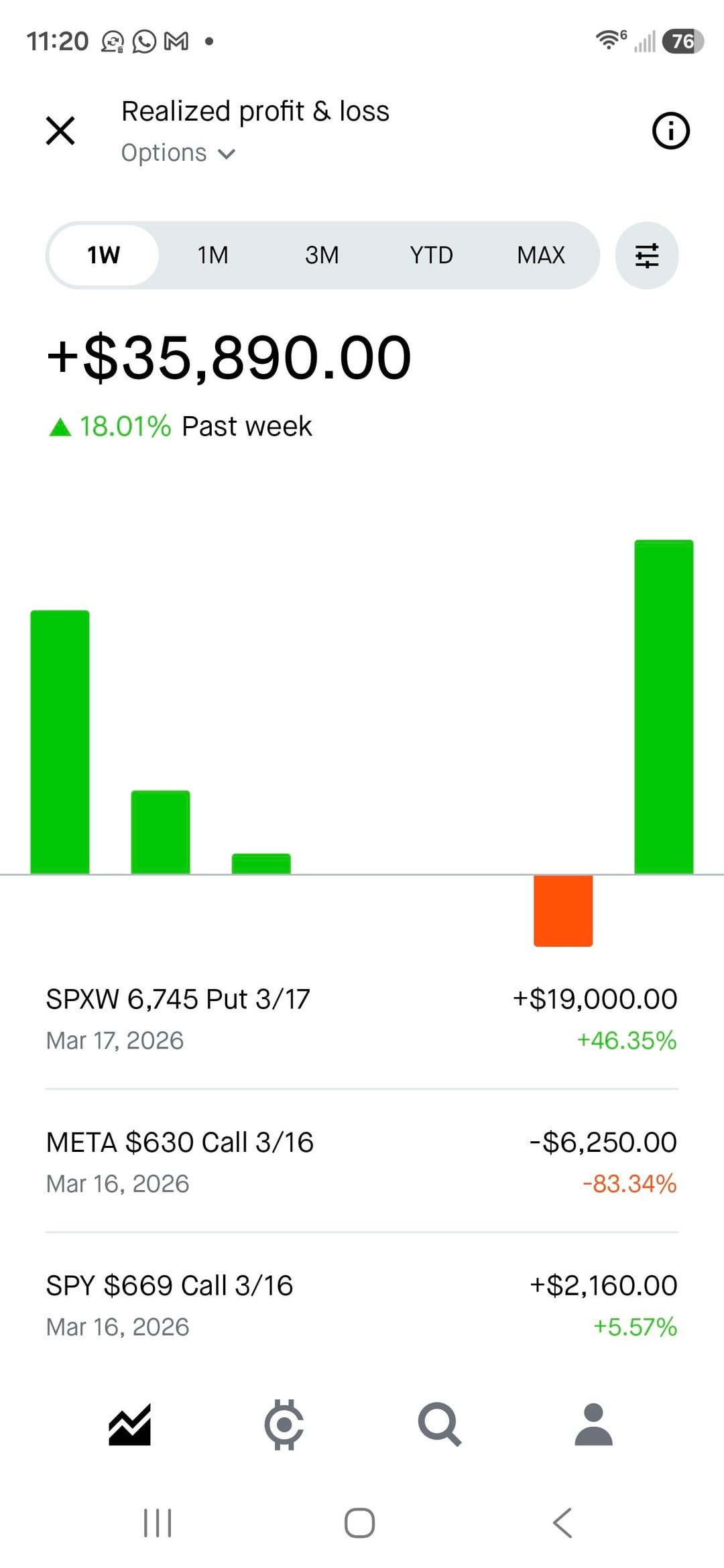 After a loss the previous day, I planned to withdraw but decided to take one final trade on a gut feeling that the market would pull back following the rally from yesterday and sincemorning was already up .75%. I entered SPX put options early in the morning with an initial position of 10 contracts and continued adding more positions, pretty much going alllllll innnnnn!!!!. The trade played out as expected, SPX went down and made me almost 20k. Had to get out of the contract because didnt wanted to lose my initial gains 19k is enough, after yesterdays bad call decision today hits the sweet spot!!! Overall im up 30k+ ytd and this was my final yolo gamble. Once the funds settle down Tommorow, im withdrawing all my funds. Im happy with this much. Im checking out from YOLO-ing. Good luck with your wins, peace out ✌️!