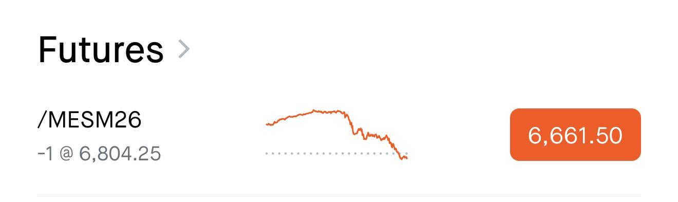 Just got approved for futures on Robinhood, no tutorial nothing. Thought I was buying long on /MESM26, somehow shorted -1 @ 6804.