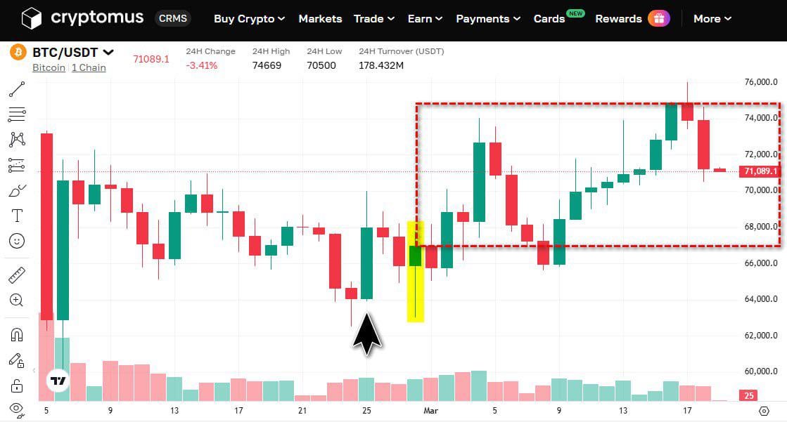 The first strikes hit Iran on February 28th, but three days before the operation, insiders were already quietly buying Bitcoin — pushing the price up 5% in a single session. BTC kept climbing for the first 20 days of the war, then gave back half of that "war premium" in just two days.