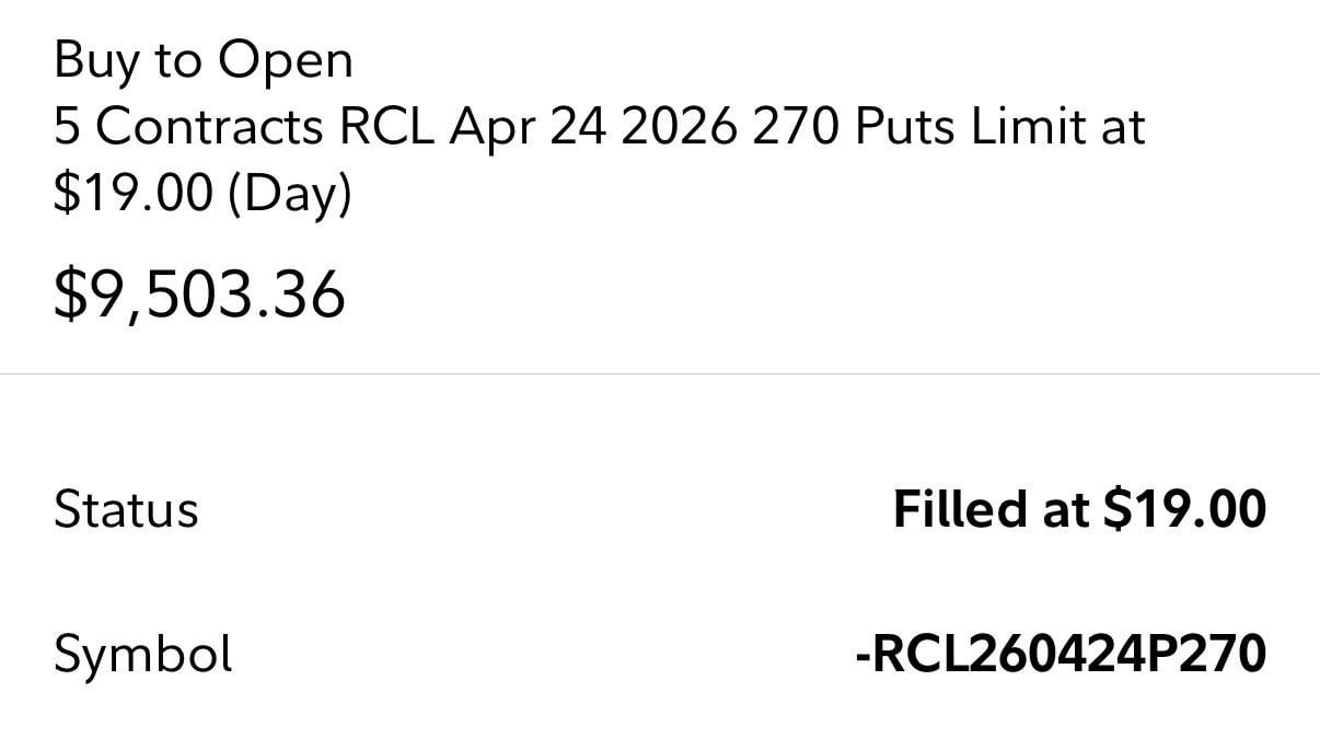 The cruise industry’s fuel operating costs typically sit at around 10% of their expenses. During periods of oil price volatility, that expense can dramatically increase and that’s what we’re about to see. Cruise margins are a fragile fragile thing. During COVID, RCL stock plummeted to $30. It’s currently sitting at 300. There is no world where the disruption in oil supply and price doesn’t crush this stock. In 2022, total fuel expenses for cruises doubled, and we’re about to see significantly more disruption in oil than we had in 2022. This fat pig is headed for slaughter.