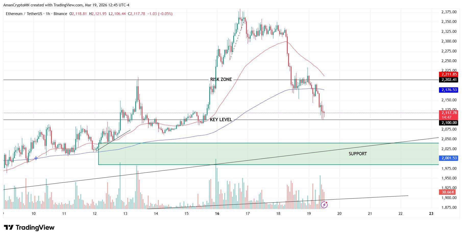 We’ve already bounced twice off the key level at 2,100. Now price is approaching it again.