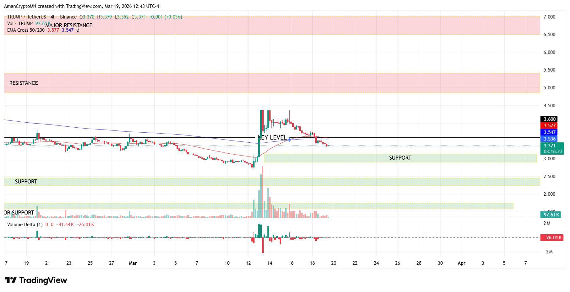 The key level has already been broken. If price pulls back to the support around $3,13-$2,90, we need to watch for confirmation.