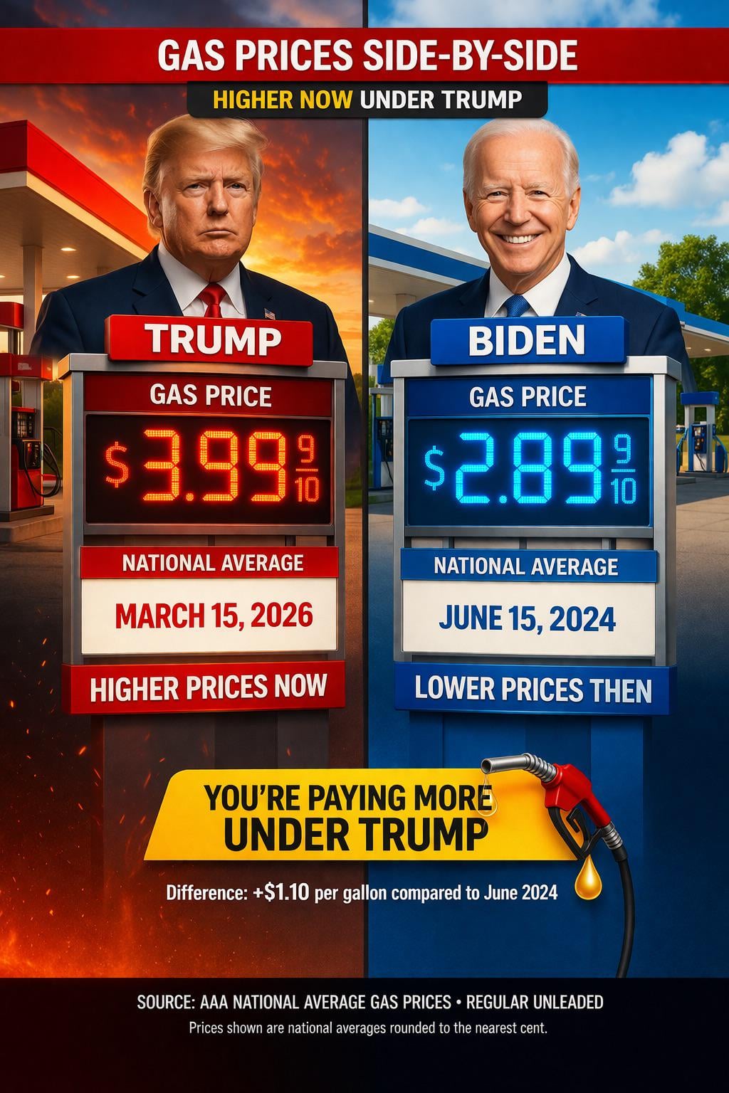 I’m no fan of Trump, but do you really want me to point out that a gallon of gas on average according to AAA was, I believe, $3.95 or $3.96 in 2022 and $3.52 in 2023? This comparison is very selective, cherry picking.