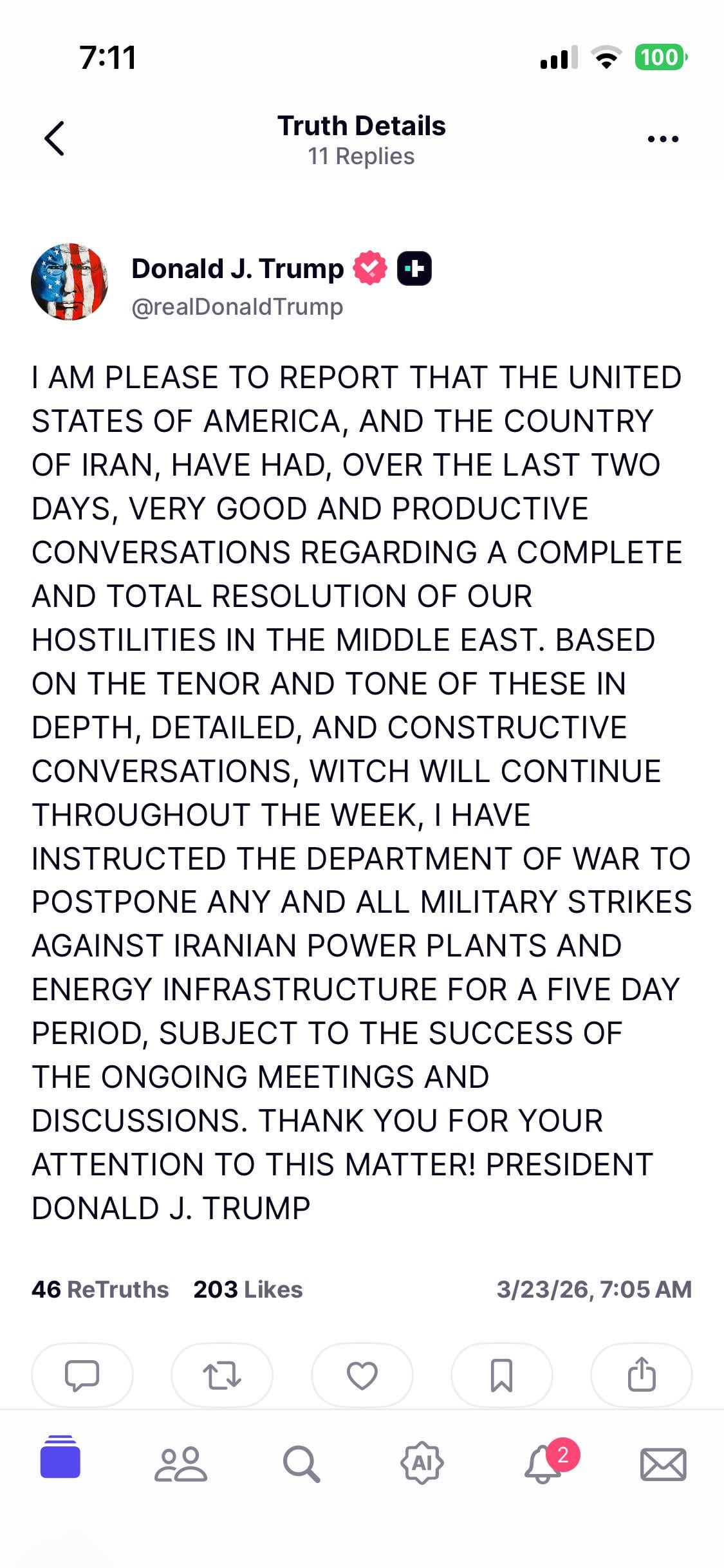 Lies and not credible, no Iranian demands met. He is using this to chicken out, then he’ll claim he was tricked. Going to buy lots at open