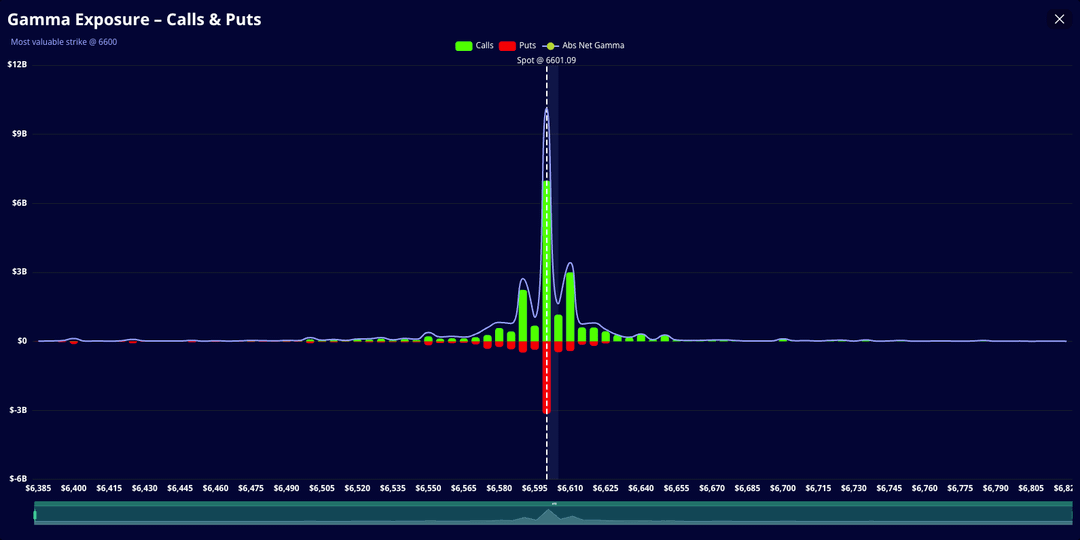 I think, with this much positive gamma concentrated at 6600 and expiration pressure building, the path of least resistance is a close near 6600.