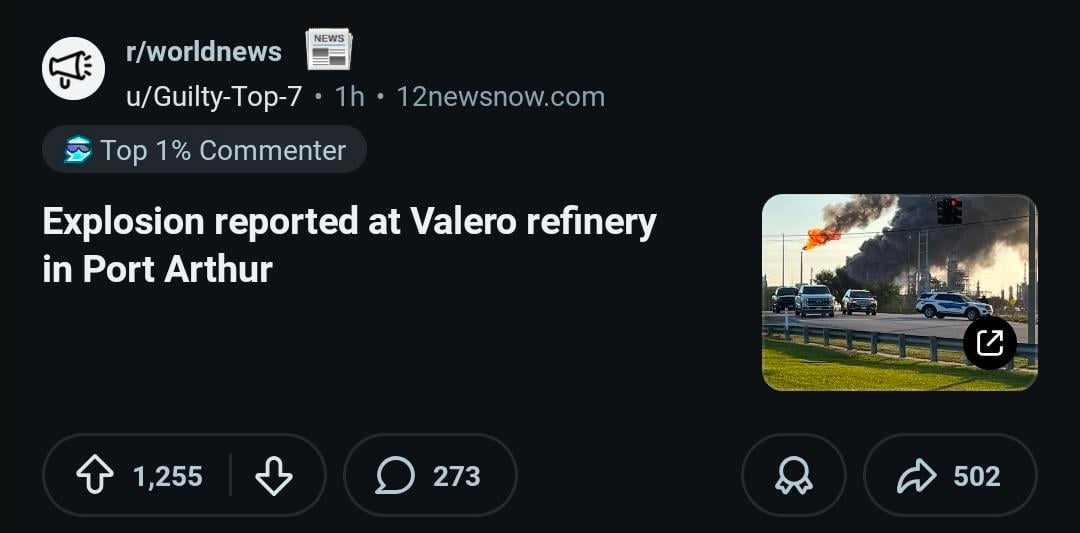 yeah….the Valero refinery here in Beaumont is on fire. Literally….
