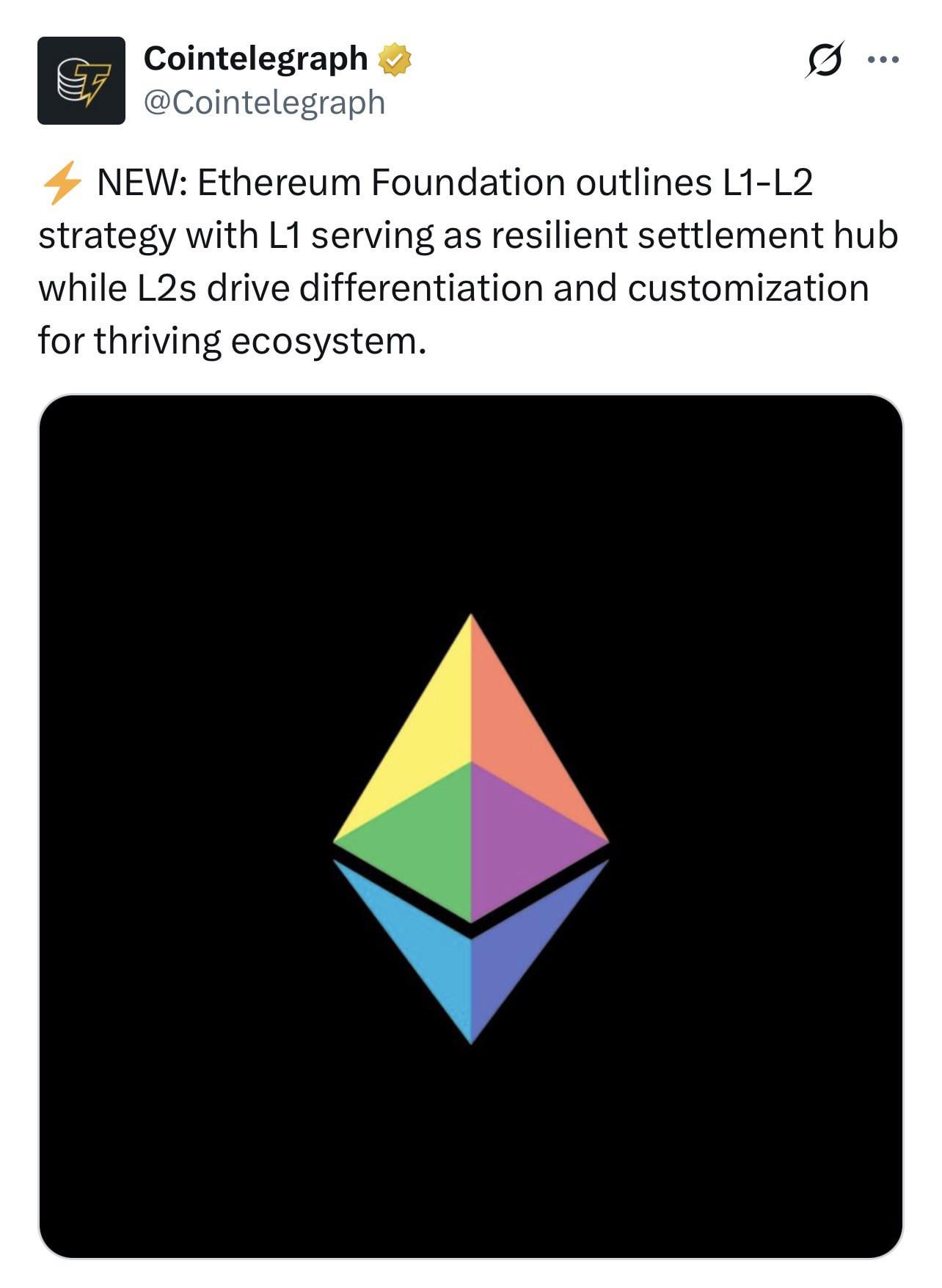 Ethereum Foundation outlines L1-L2 strategy with L1 serving as resilient settlement hub https://i.redd.it/wo7lkz6n8xqg1.jpeg Posted by Creative_Ad7831