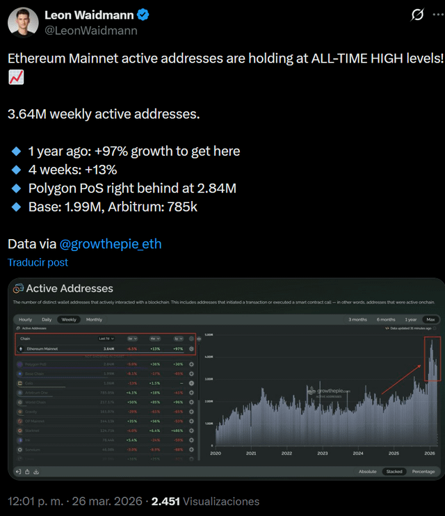 kirtash93 on March 26, 2026 3:59 pm Ethereum keeps consistently proving that no matter the price or market situation, adoption keeps growing and they keep working on things.