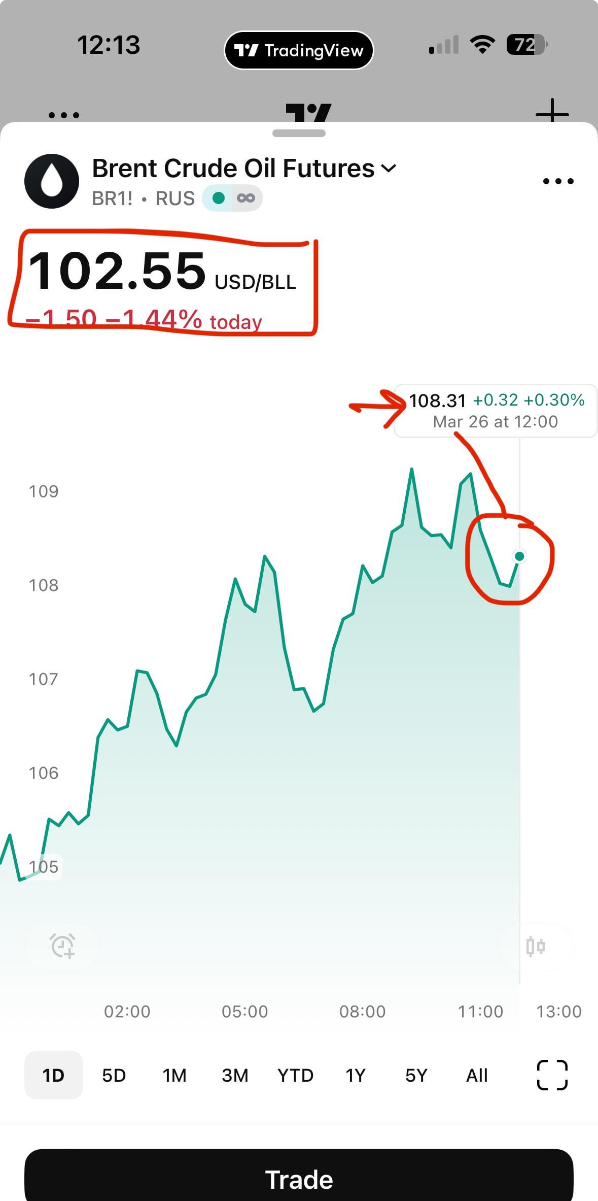 What’s with the discrepancy here? Chart shows $108 but header shows $102 https://i.redd.it/y43gapcvvfrg1.jpeg Posted by mwtaeke