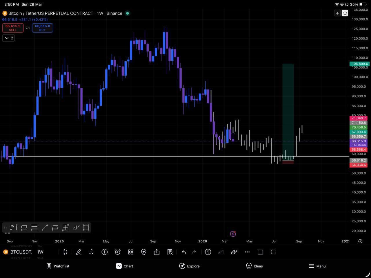 If we get the kind of weekly candle formations I’ve marked on the chart, there’s a real chance of catching a large move, possibly 50k+, as a positional swing.