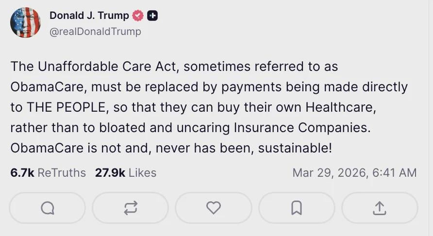 Trump calls for REPLACING ObamaCare with direct payments to Americans