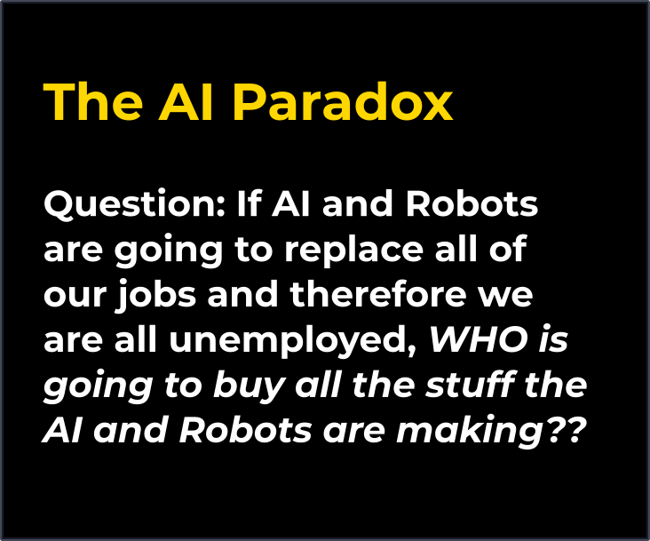 This is not a paradox. Getting people to buy your products is only needed if you are buying labor.