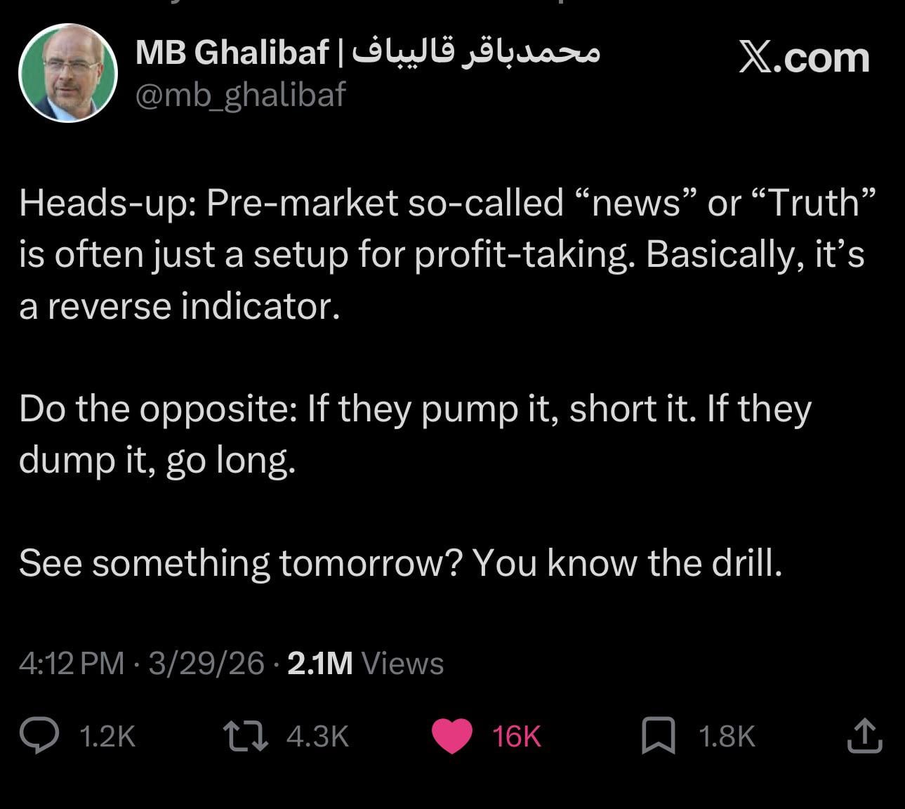 Iran’s parliament speaker giving financial advice for tomorrow. https://i.redd.it/8v4moijs32sg1.jpeg Posted by Potential-Abroad5274