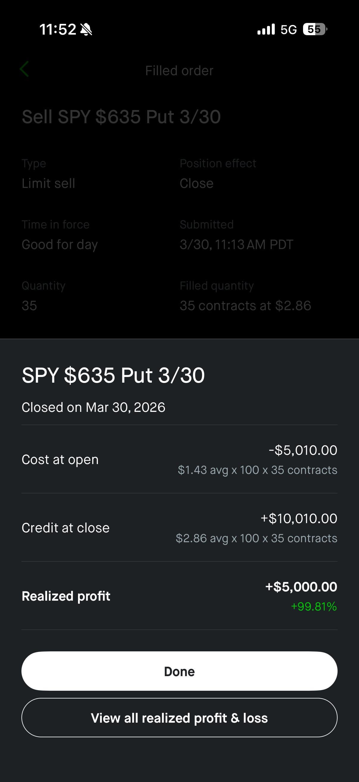 Left 10K on the table by selling 10 minutes earlier. Profit is profit. 5k was my target.
