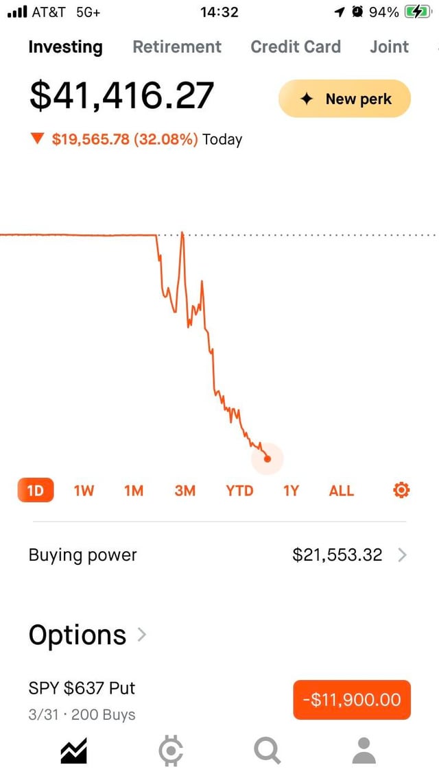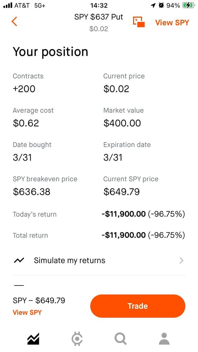 20K loss from 200 contracts, SPY 637p exp 03/31 – 0DTE puts
