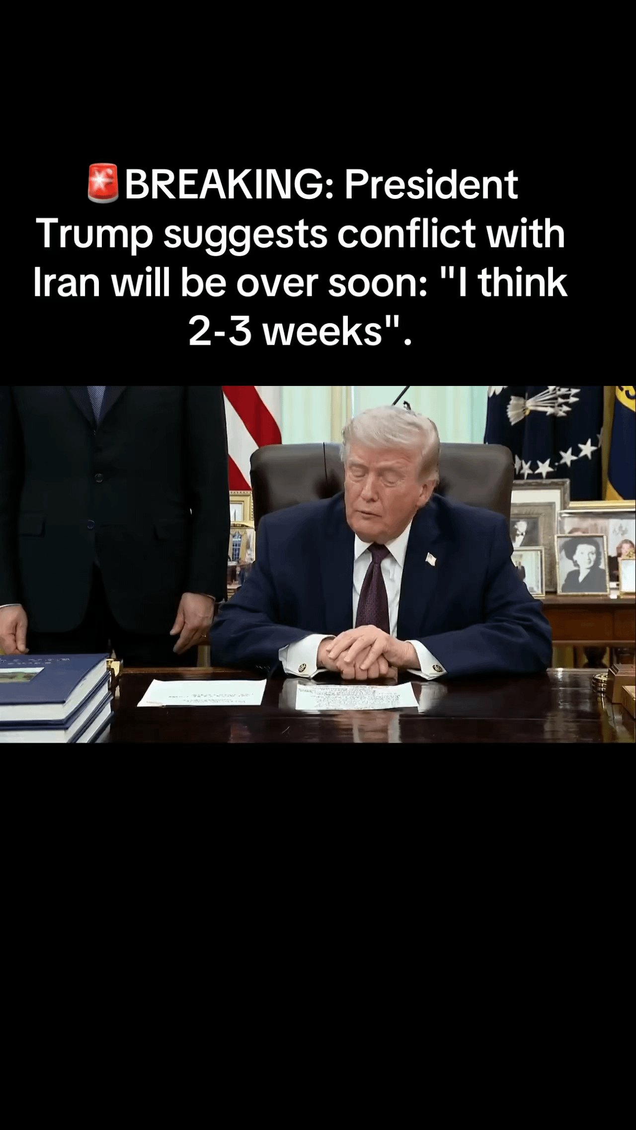 President Trump suggests conflict with Iran will be over soon: “I think 2-3 weeks”.