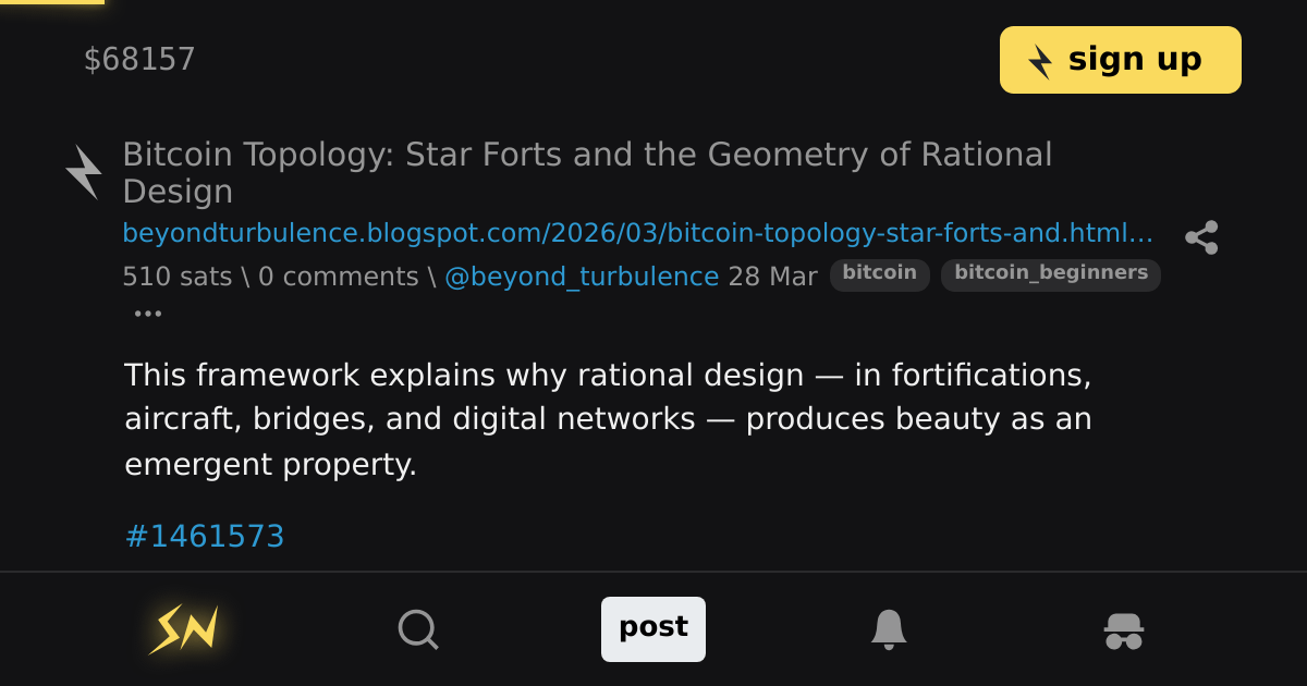 Bitcoin Topology: Star Forts and the Geometry of Rational Design \ stacker news https://stacker.news/items/1461576 Posted by T_bone_2025