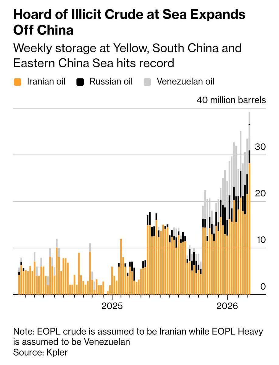 Iran is exporting oil to China at much greater volume than before the war while Venezuelan oil continues to flow to China