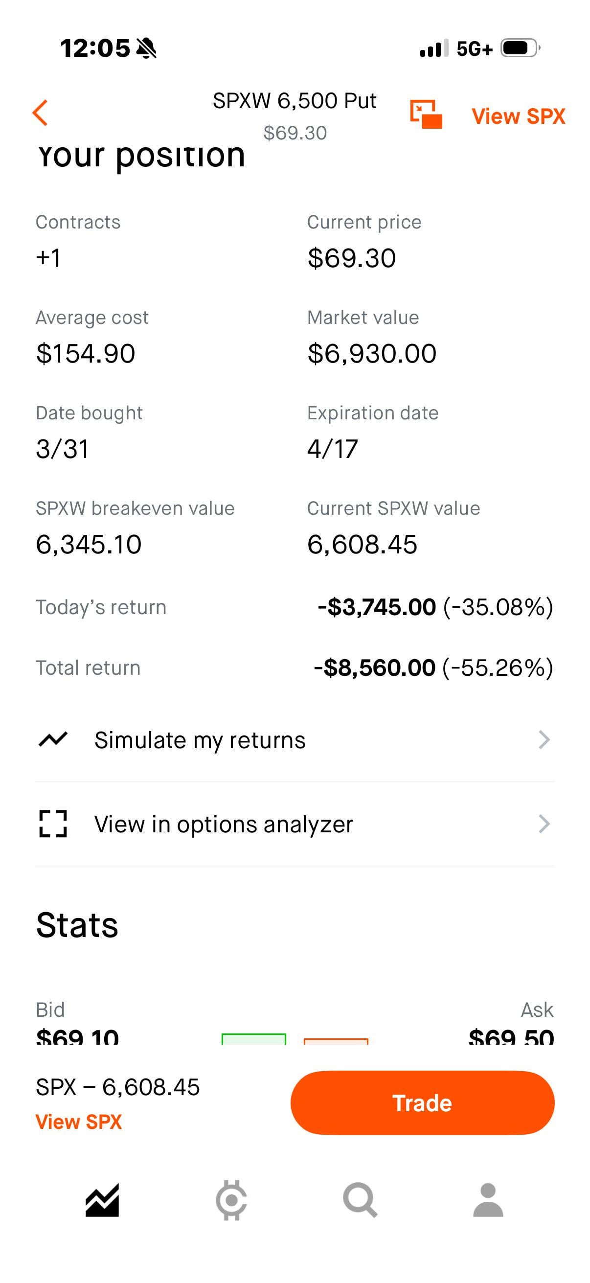 I have some May SPY puts that flipped negative because of recoveries this week. Still a bearish outlook tbh.