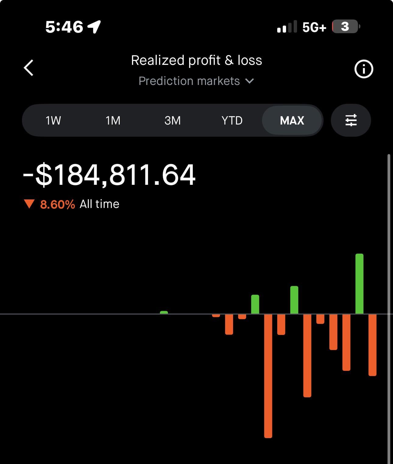 Down $184k all time. Elite bad timing.