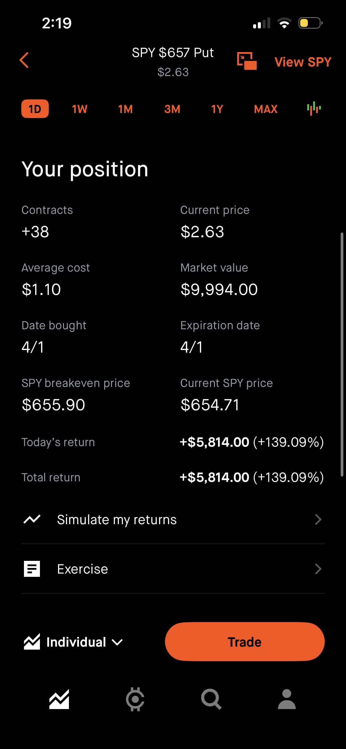 i had 25 puts lol. Different strikes i was slowly stacking while it went up. Thank the lord for whatever dropped the hammer. went from -800 to +4000. Never gonna stack again… til tomorrow