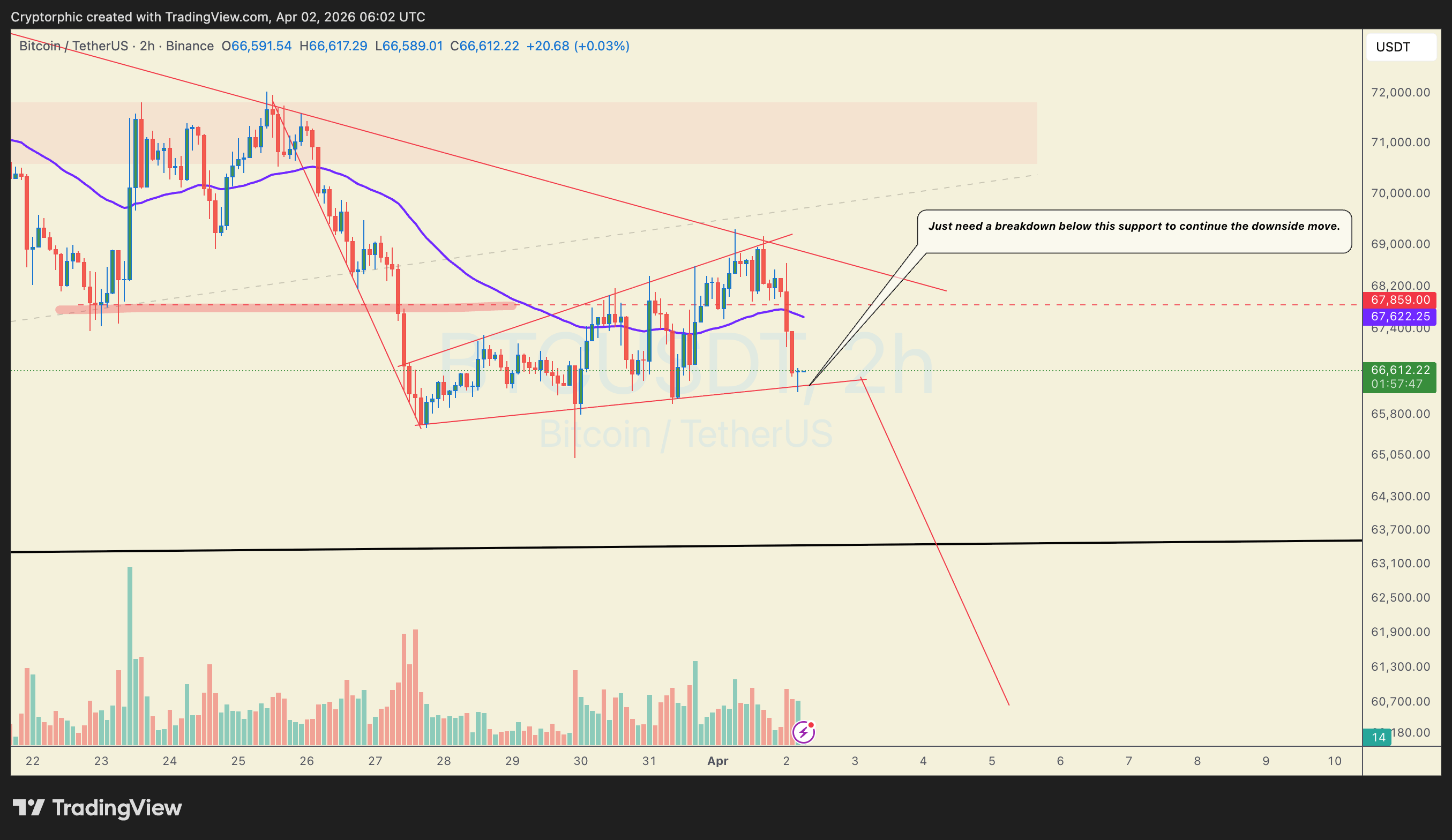 As we expected, BTC got rejected from that resistance zone and started moving down, but it still hasn’t confirmed a full breakdown yet.
