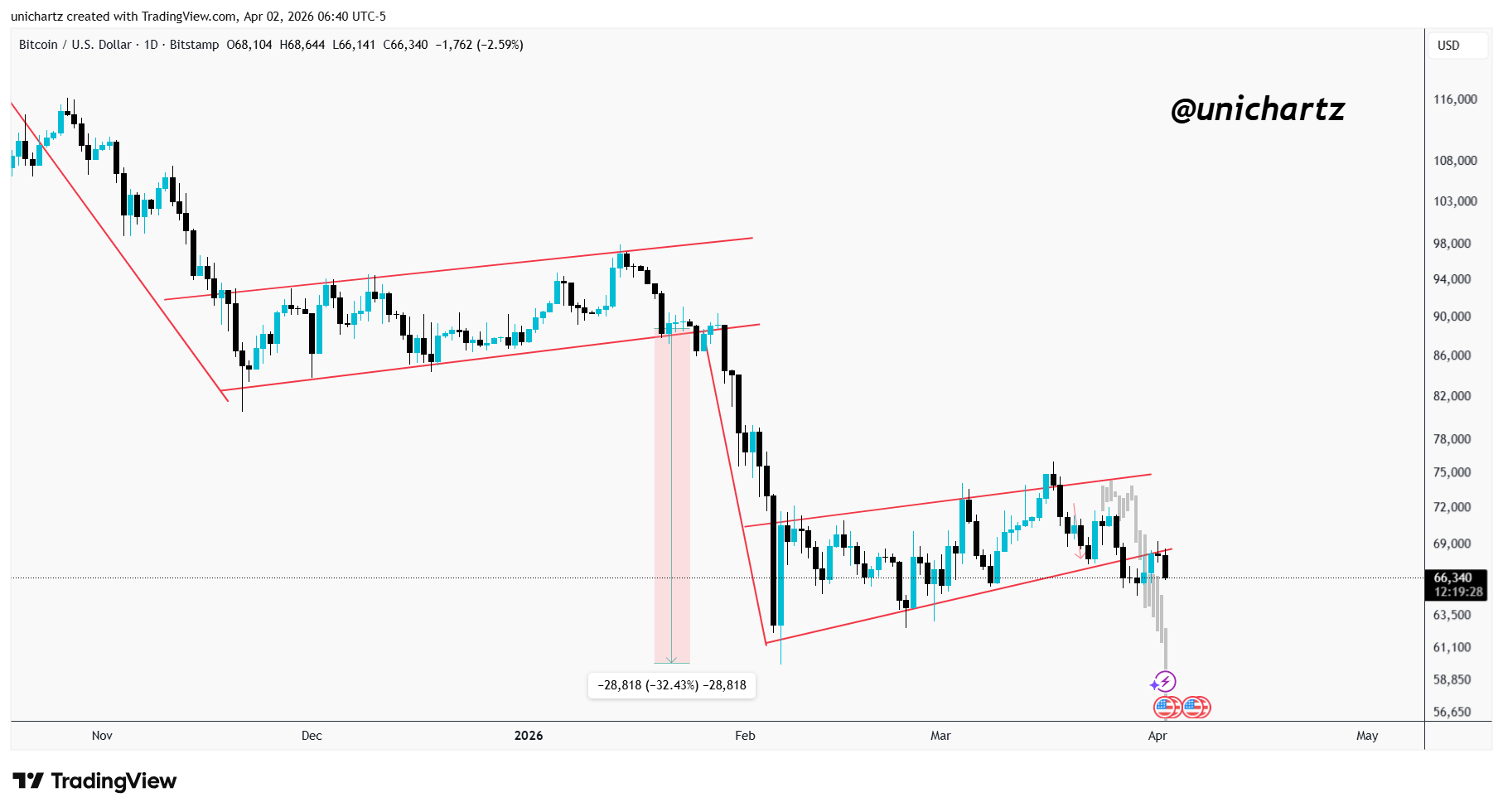The Break: Bitcoin finally broke the bottom of that bear flag.