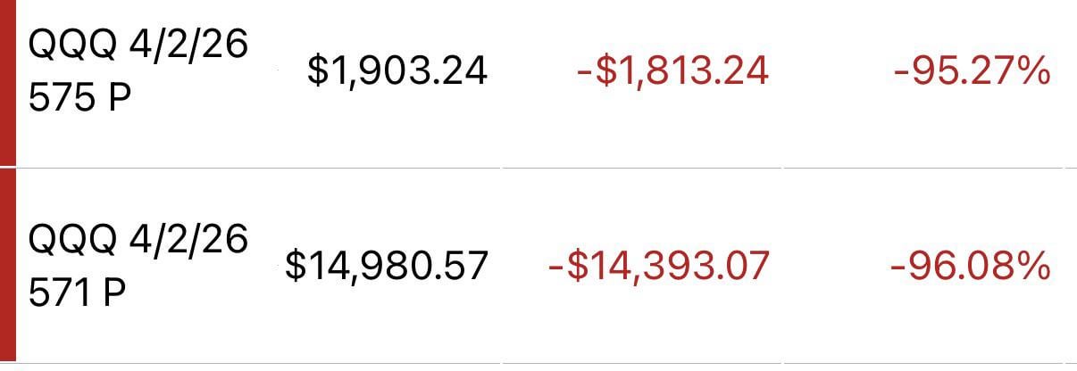 On Tuesday we opened qqq almost 2% up in this shit environment with a few wars going on,I listened to the Iranian Parliament guy and shorted it. 20 minutes into my position, almost 100% up, some other Iranian fucker says he’s ready for peace, qqq goes up to over 3%. I buy puts for today, 2dtes, thinking it would drop at least a bit, but revenge trading never works and it pumped another 2% yesterday, sold at over 50% loss.