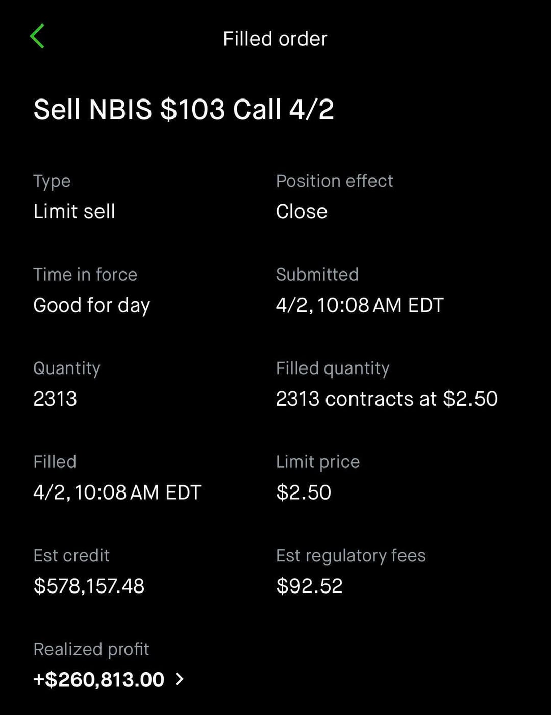 Played 0DTE NBIS today for ~272k gain with the majority of the profit coming from the $103 calls. Had a nice 288k MRVL gain yesterday playing 1DTE $105 calls for 4/2. Big thank you to NVDA for the positive momentum.