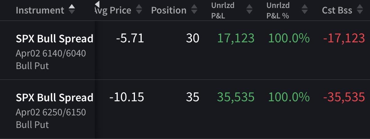 • 6250p / 6150p PCS due Apr 2 @ 10.15 net credit for 35 contracts = $35,535 profit