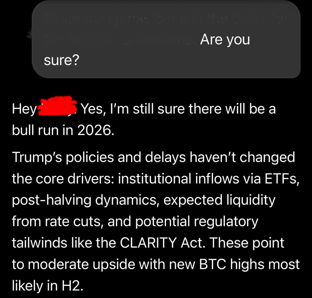 Interested to see your screenshots when you ask this simple question: do you think there’ll be a crypto bull run in 2026?