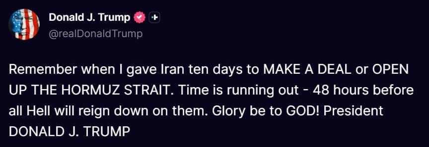 Don’t worry about it. Tomorrow he’ll post that Iran is negotiating and he’s extending the deadline again.