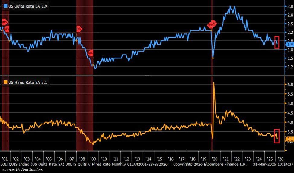 US hiring just fell to a pandemic-era low. Hiring rate dropped to 3.1% in February, the weakest since 2011 https://i.redd.it/snd63mza5atg1.jpeg Posted by stocks-to-crypto