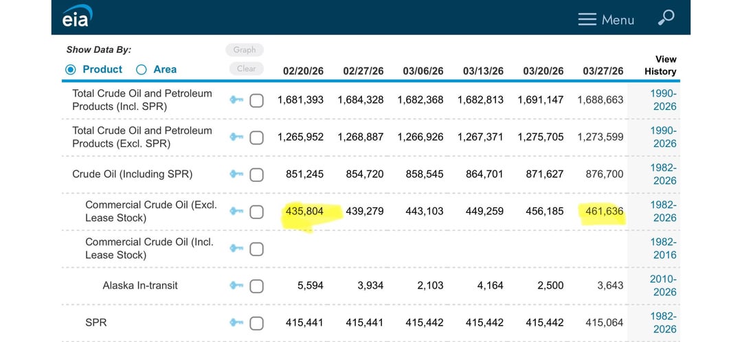 Thesis: There actually is no shortage of oil in the United States. Inventory levels have continued to rise over the last month even with the Conflict in the Middle East.