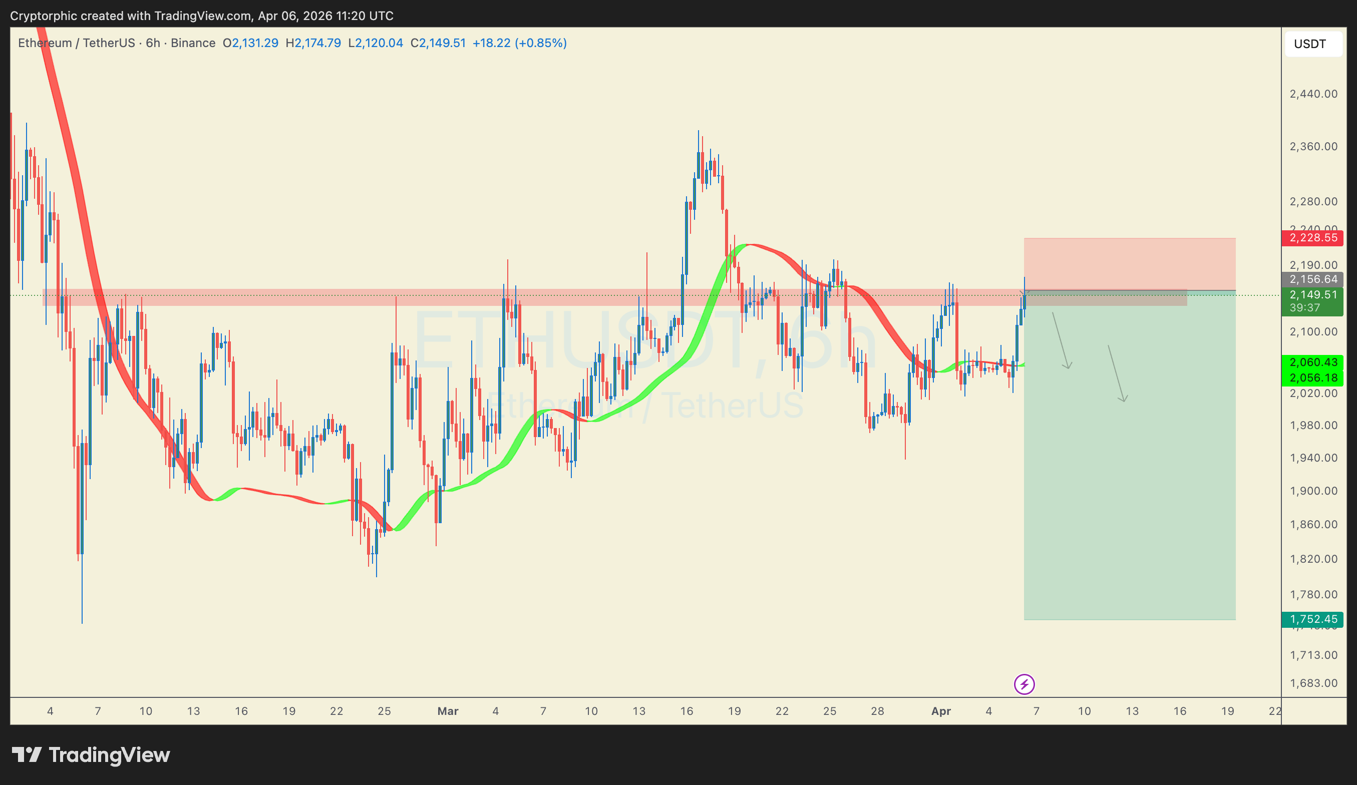Looking at the charts, Ethereum has just hit a major supply zone around the $2,150 level. This area has acted as a brick wall several times recently, and price is currently showing signs of rejection.