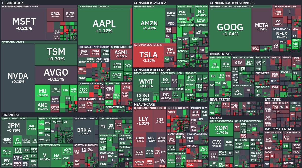 The major U.S. stock indexes edged higher today, April 6, 2026, as possible de-escalation signals from the Middle East continued to support sentiment and oil prices remained relatively stable. The S&P 500 rose 0.44% (+29.14 points) to close at 6,611.83, the Dow Jones Industrial Average gained 0.36% (+165.21 points) to close at 46,669.88, and the Nasdaq Composite advanced 0.54% (+117.16 points) to close at 21,996.34. In dollar terms, the broader market (approximated by the S&P 500's roughly $58–60 trillion cap) added an estimated $250–280 billion in value.