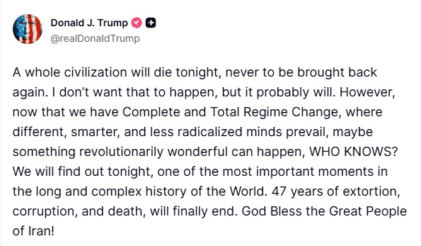 Trump, “The Iranian people are asking us to continue, which is why I’m going to nuke them!”